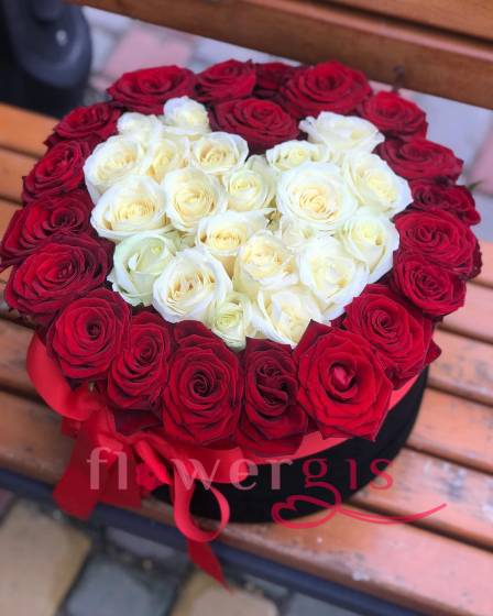 Искренним признанием в любви послужит фееричная композиция «Сердечный поцелуй» из белых и красных роз. Декоративная атласная ленточка нежно держит в объятиях черную коробку с выложенным из роз сердцем. Потрясающе красивая и гармоничная аранжировка покорит сердце дамы, будь то юная прелестница, дама постарше, мама, сестра или коллега, отмечающие знаковое событие или юбилей.